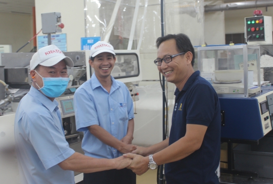 Ông Huỳnh Bá (bên trái) cùng lãnh đạo công ty