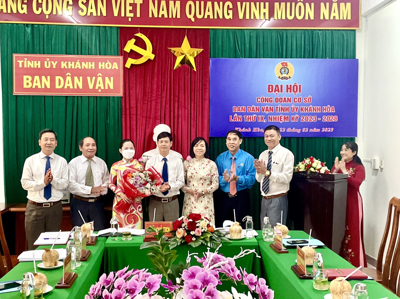 Chiều ngày 22/02/2023, Ban Dân vận Tỉnh ủy đã tổ chức Đại hội Công đoàn cơ sở lần thứ IX, nhiệm kỳ 2023-2028. Dự và chỉ đạo Đại hội có ông Nguyễn Thanh Phong – Chủ tịch Công đoàn Viên chức tỉnh Khánh Hòa, các đồng chí lãnh đạo Ban, Chi ủy, các đồng chí trong Ban Chấp hành chi ủy và toàn thể đoàn viên công đoàn Ban Dân vận Tỉnh ủy.