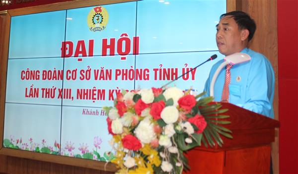 Chiều 28/2/2023, Công đoàn cơ sở Văn phòng Tỉnh ủy Khánh Hòa tổ chức Đại hội lần thứ XIII, nhiệm kỳ 2023-2028. Đồng chí Nguyễn Khắc Toàn - Phó Bí thư Thường trực Tỉnh ủy, Chủ tịch HĐND tỉnh Khánh Hòa và đồng chí Nguyễn Thanh Phong - Chủ tịch Công đoàn Viên chức tỉnh đến dự và chỉ đạo Đại hội.