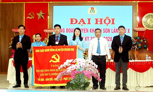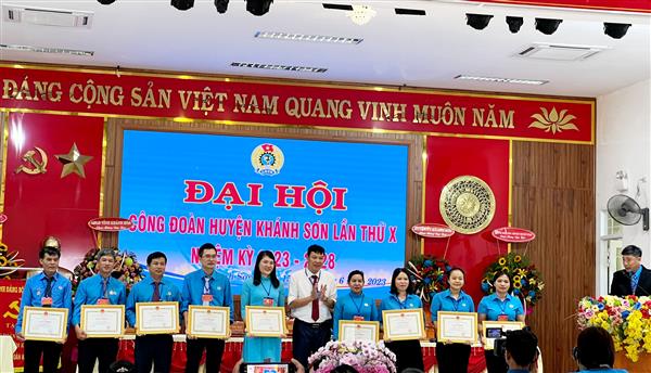 Tại Đại hội, lãnh đạo huyện ủy trao tặng bức trướng “Đổi mới - Dân chủ - Đoàn kết - Phát triển” cho Ban Chấp hành LĐLĐ huyện; LĐLĐ tỉnh tặng bằng khen cho Ban Chấp hành LĐLĐ huyện Khánh Sơn, tặng bằng khen cho 3 tập thể và 3 cá nhân; UBND huyện tặng giấy khen cho 5 tập thể và 10 cá nhân đã có thành tích xuất sắc nhiệm kỳ 2018 -2023.