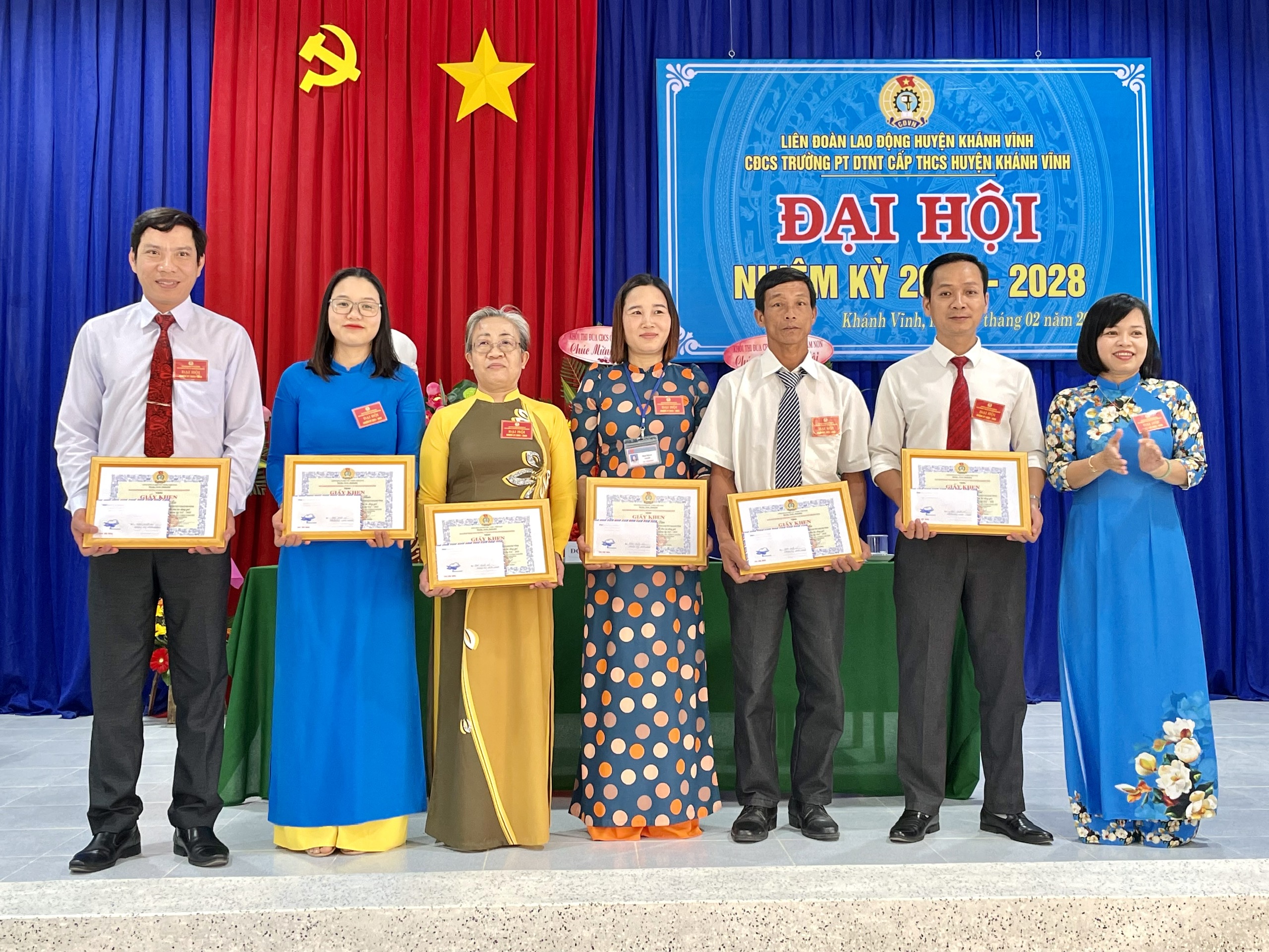 Vừa qua, Đại hội Công đoàn cơ sở Trường phổ thông Dân tộc nội trú cấp THCS huyện Khánh Vĩnh, nhiệm kỳ 2023 - 2028 đã diễn ra long trọng, đây là đơn vị được Liên đoàn Lao động huyện lựa chọn tổ chức Đại hội điểm cơ sở khối các trường học. Về dự và chỉ đạo Đại hội có đồng chí Nguyễn Thị Việt – Chủ tịch LĐLĐ huyện; đồng chí Lê Thị Diễm- Bí thư Chi bộ, Hiệu trưởng nhà trường.