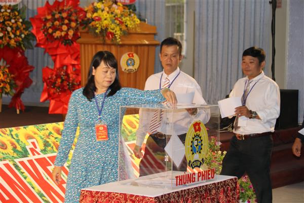 Đại biểu tham gia bỏ phiếu bầu Ban Chấp hành CĐVC tỉnh, nhiệm kỳ 2023 - 2028