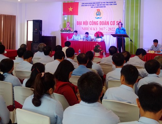 Ngày 15-9, Đại hội CĐCS Công ty TNHH MTV Khai thác công trình Thủy lợi Nam Khánh Hòa lần thứ IX, nhiệm kỳ 2017-2022 đã được tổ chức thành công với sự tham gia của 81 đại biểu của 6 CĐ bộ phận trực thuộc công ty. Dự Đại hội có lãnh đạo Ban Tổ chức LĐLĐ tỉnh và CĐ ngành NN-PTNT tỉnh.