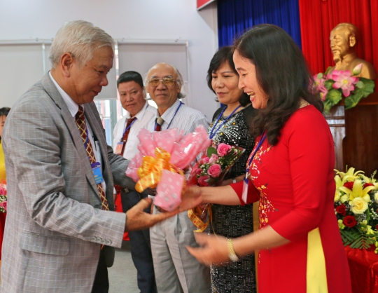 tặng hoa cho các đồng chí thôi Ban Chấp hành nhiệm kỳ 2013-2018