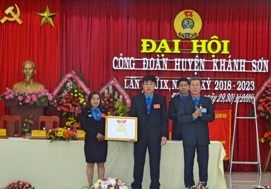 Nhân dịp này, Liên đoàn Lao động tỉnh tặng Bằng khen cho LĐLĐ huyện Khánh Sơn; UBND huyện tặng giấy khen cho 5 tập thể, 9 cá nhân đã có thành tích xuất sắc trong hoạt động Công đoàn nhiệm kỳ 2013-2018.