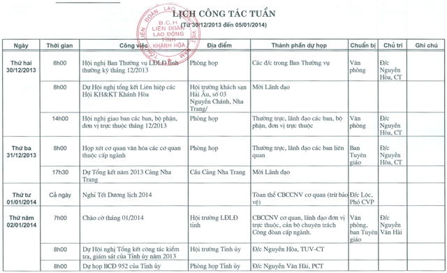 - Lịch Công tác tuần từ 10/12 - 15/12/2013 (11/12/2013)