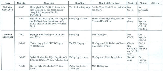 - Lịch công tác tháng 01/2015 (07/01/2015)