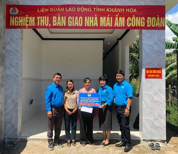 Nằm trong chuỗi các hoạt động hưởng ứng chào mừng Đại hội Công đoàn tỉnh Khánh Hòa lần thứ XI, nhiệm kỳ 2023 – 2028, trong tháng 10.2023 Liên đoàn Lao động tỉnh Khánh Hòa tổ chức nghiệm thu, bàn giao 07 nhà “Mái ấm Công đoàn Khánh Hòa” cho 07 gia đình đoàn viên, người lao động có hoàn cảnh khó khăn về nhà ở tại huyện Khánh Vĩnh, Diên Khánh và thị xã Ninh Hòa.