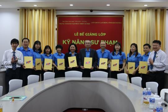 Thực hiện Chương trình công tác 6 tháng cuối năm 2018 của Ban Thường vụ Liên đoàn Lao động tỉnh và Chương trình liên kết đào tạo của trường Đại học Tôn Đức Thắng, LĐLĐ tỉnh đã phối hợp với Trung tâm Đào tạo Phát triển Xã hội trường Đại học Tôn Đức Thắng tổ chức khóa học “Kỹ năng Sư phạm” cho đội ngũ báo cáo viên LĐLĐ tỉnh nhiệm kỳ 2018 – 2023.