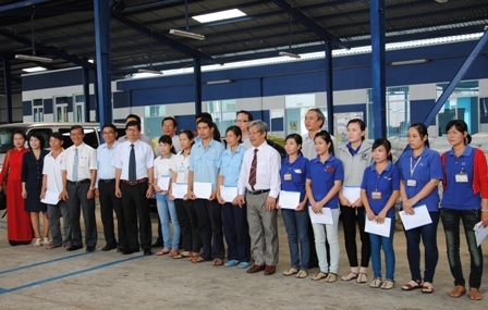 Ngay sau Lễ phát động các đồng chí lãnh đạo Tỉnh ủy, UBND tỉnh, LĐLĐ tỉnh và CĐ các Khu CN và Khu KT Khánh Hòa đã tới thăm Công ty THHH Long Sinh và tặng 12 suất quà cho CNLĐ khó khăn.