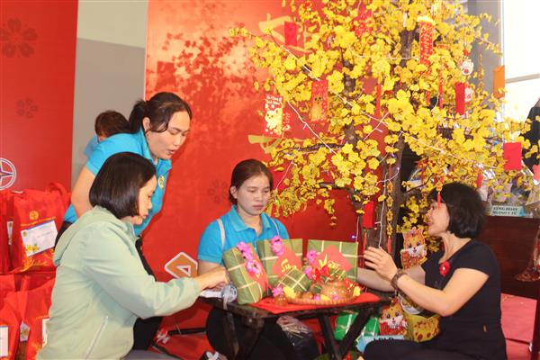 Trong không khí nhộn nhịp, hội thi gói bánh chưng, cắm hoa mai, hoa đào, gói giỏ quà tết của cán bộ công đoàn cấp ngành, cấp huyện đã mang đến một bầu khống khi tràn ngấp sắc xuân. Đặc biệt, toàn bộ những chiệc bánh chưng, cành mai, cành đào, giỏ quà Tết tại hội thi đều dành tặng cho những công nhân có hoàn cảnh khó khăn. Cầm trên tay giỏ quà Tết được công đoàn trao tặng, ông Dương Ngọc Vinh, công nhân Công ty TNHH MTV Rapexco Đại Nam chia sẻ: “Chưa bao giờ tôi được tham gia ngày hội vui xuân đầm ấm thế này. Đã vậy, tôi còn được nhận quà Tết của tổ chức công đoàn trao tặng thật là ý nghĩa”.