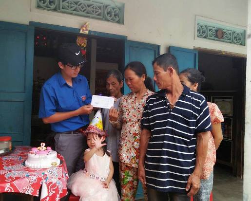 Sáng 12/11, Chi đoàn TNCS.HCM Cơ quan LĐLĐ tỉnh Khánh Hòa tổ chức sinh nhật 3 tuổi cho bé Bích Vân (Tổ dân phố 6, thị trấn Vạn Giã, huyện Vạn Ninh) và trao số tiền hỗ trợ 900.000đ.
