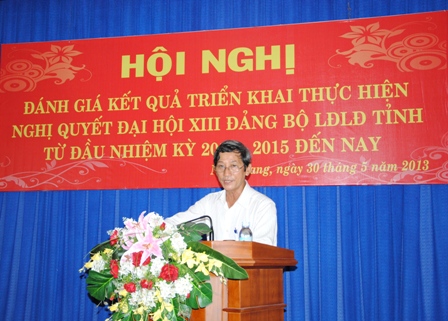 Sáng 30.5, Đảng bộ LĐLĐ tỉnh tổ chức Hội nghị đánh giá kết quả thực hiện Nghị quyết ĐH Đảng bộ lần thứ XIII, nhiệm kỳ 2010 – 2015. Đồng chí Nguyễn Văn Hài – Bí thư Đảng ủy, Phó Chủ tịch Thường trực LĐLĐ tỉnh chủ trì hội nghị.