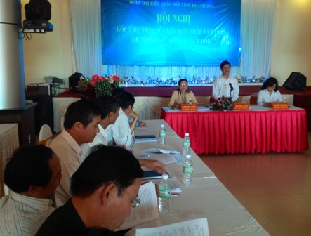 Vừa qua, Đoàn đại biểu Quốc hội tỉnh Khánh Hòa đã tổ chức hội nghị góp ý kiến Dự thảo sửa đổi Hiến pháp năm 1992, chủ trì hội nghị có các Đại biểu Quốc hội Đặng Đình Luyến, Phó Chủ nhiệm Ủy ban Pháp luật của Quốc hội; Lê Minh Hiền, Phó Trưởng đoàn Đại biểu Quốc hội tỉnh; Nguyễn Thị Nhung, Chủ tịch Hội Liên hiệp Phụ nữ tỉnh; và hơn 80 đại biểu là lãnh đạo các sở, ban ngành, đoàn thể của tỉnh, lãnh đạo các huyện, thị xã, thành phố…tham dự hội nghị. Website Công đoàn Khánh hòa xin giới thiệu ý kiến phát biểu của đồng chí Nguyễn Hòa, Chủ tịch LĐLĐ tỉnh.