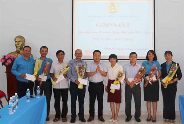 Phát biểu tại buổi gặp mặt, đồng chí Bùi Đăng Thành - Phó Chủ tịch LĐLĐ tỉnh Khánh Hòa gửi lời chúc mừng và bày tỏ lòng tri ân sâu sắc đối với những đóng góp to lớn của đội ngũ nhà giáo cho sự nghiệp giáo dục và sự nghiệp xây dựng tổ chức Công đoàn vững mạnh. Đối với cán bộ công đoàn chuyên trách ngành Giáo dục tỉnh thời gian tới tiếp tục quan tâm, theo dõi, đóng góp nhiều ý kiến cho hoạt động của Công đoàn ngành Giáo dục; các cán bộ công đoàn đang công tác trong ngành tiếp tục nỗ lực để hoàn thành tốt nhiệm vụ được giao, bám sát cơ sở, kịp thời tham mưu, đề xuất những chế độ chính sách, phúc lợi thiết thực cho cán bộ, nhà giáo, người lao động.
