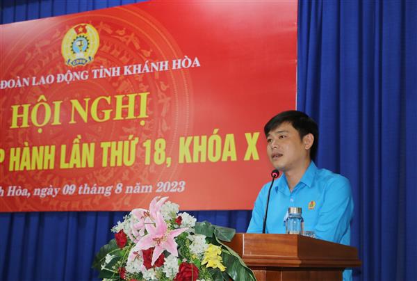 Sáng 09/8/2023, LĐLĐ tỉnh Khánh Hòa tổ chức Hội nghị Ban Chấp hành lần thứ 18, nhiệm kỳ 2018-2023. Tham dự Hội nghị có đại biểu Ban Dân vận Tỉnh ủy, các đồng chí Ủy viên Ban Chấp hành, Ủy viên Ủy ban kiểm tra LĐLĐ tỉnh (khóa X).
