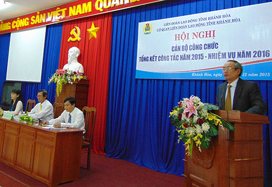 Ngày 31-12, Cơ quan Liên đoàn Lao động tỉnh tổ chức Hội nghị cán bộ công chức năm 2015. Đồng chí Nguyễn Hoà – Bí thư Đảng đoàn, Chủ tịch Liên đoàn Lao động tỉnh đến dự và phát biểu ý kiến chỉ đạo.