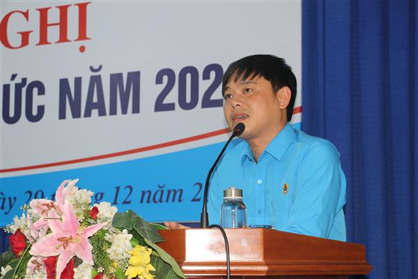 Chiều ngày 29/12/2022, CĐCS Cơ quan Liên đoàn Lao động tỉnh tổ chức Hội nghị cán bộ công chức năm 2022 và triển khai nhiệm vụ 2023, Chủ tịch LĐLĐ tỉnh, đồng chí Nguyễn Thanh Phong – Chủ tịch CĐVC tỉnh.