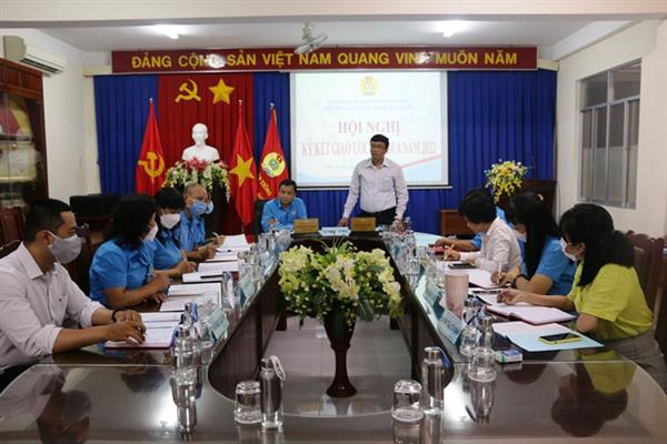 Hội nghị đã ký kết giao ước thi đua năm 2022, các thành viên trong Khối thống nhất phấn đấu hoàn thành tốt Chương trình công tác của các ban, đơn vị, phấn đấu đạt các chỉ tiêu danh hiệu thi đua năm 2022 và suy tôn Văn phòng Liên đoàn Lao động tỉnh làm Trưởng Khối năm 2022.