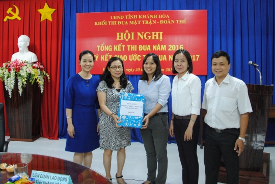 Sáng ngày 20/4, Khối thi đua Mặt trận-Đoàn thể tỉnh Khánh Hòa, bao gồm: Uỷ ban MTTQVN tỉnh, Hội Cựu chiến binh, Liên đoàn Lao động tỉnh, Hội Nông dân, Hội Liên hiệp Phụ nữ, Tỉnh đoàn, Liên hiệp các Hội Khoa học và Kỹ thuật tỉnh tổ chức Hội nghị Tổng kết thi đua năm 2016 - Ký kết giao ước thi đua năm 2017.