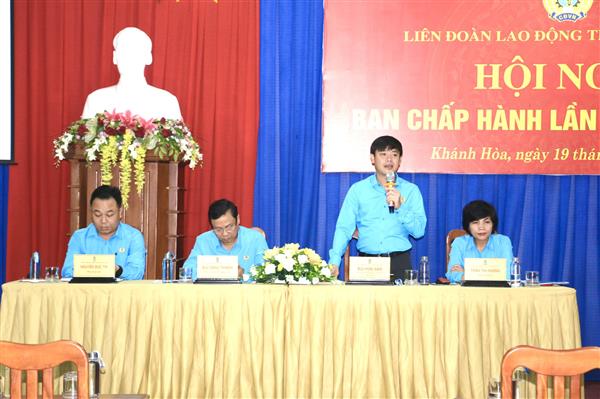 Phát biểu khai mạc Hội nghị, đồng chí Bùi Hoài Nam - Chủ tịch LĐLĐ tỉnh cho biết, Hội nghị lần này có nhiệm vụ thảo luận, quyết định một số vấn đề quan trọng: Chương trình hành động thực hiện Nghị quyết Đại hội XI Công đoàn tỉnh Khánh Hòa, Nghị quyết Đại hội XIII Công đoàn Việt Nam; Chương trình hoạt động toàn khóa, Quy chế làm việc; Phân công nhiệm vụ ủy viên Ban Chấp hành, UBKT LĐLĐ tỉnh nhiệm kỳ 2023-2028; Chương trình kiểm tra, giám sát của Ban Thường vụ, UBKT LĐLĐ tỉnh năm 2024; và một số vấn đề quan trọng tập trung tổ chức các hoạt động chăm lo đời sống, vật chất tinh thần cho đoàn viên, NLĐ dịp Tết Nguyên đán Giáp Thìn – 2024 tại 5 điểm trong toàn tỉnh, gồm: Trung tâm văn hóa thể thao công nhân Khu Công nghiệp Suối Dầu, Siêu thị Co.opmart Nha Trang, Nhà thi đấu thể dục thể thao tại thành phố Cam Ranh, huyện Vạn Ninh và Cụm Công nghiệp Trảng É. Thời gian bắt đầu từ ngày 15/01/2024 đến hết ngày 07/02/2024. Theo Kế hoạch, dịp Tết Nguyên đán 2024, LĐLĐ tỉnh triển khai hỗ trợ 2.000 suất quà (bao gồm 700.000 đồng tiền mặt và túi nhu yếu phẩm trị giá 300.000 đồng) cho đoàn viên, NLĐ khó khăn thuộc các LĐLĐ huyện, CĐ ngành, CĐCS trực thuộc.