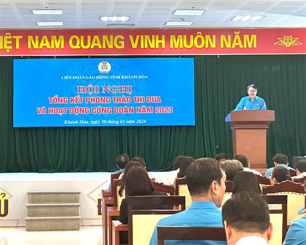 Tại Hội nghị, đồng chí Bùi Đăng Thành – Phó Chủ tịch Thường trực LĐLĐ tỉnh đã phát động phong trào thi đua năm 2024 với chủ đề “Đổi mới, sáng tạo, thi đua đưa Nghị quyết Đại hội XI Công đoàn Khánh Hòa, Nghị quyết Đại hội XIII Công đoàn Việt Nam vào cuộc sống, thiết thực lập thành tích chào mừng kỷ niệm 95 năm Ngày thành lập Công đoàn Việt Nam”, kêu gọi toàn thể cán bộ, CNVCLĐ tiếp tục ra sức thi đua, nêu cao tinh thần năng động, sáng tạo, ý chí tự lực, tự cường, quyết tâm khắc phục mọi khó khăn, thách thức, đoàn kết, phấn đấu hoàn thành xuất sắc và toàn diện các nhiệm vụ của năm 2024.