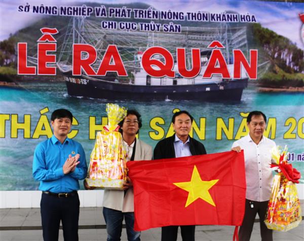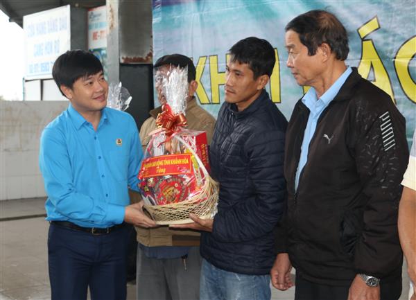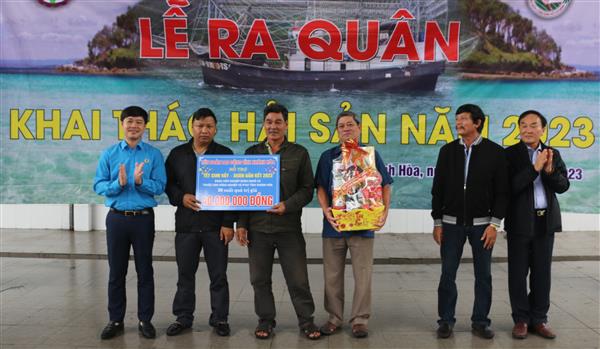 Trong lễ xuất quân khai thác hải sản đầu năm 2023, Liên đoàn Lao động Khánh Hòa tặng 95 suất quà cho chủ tảu và ngư dân nhằm đồng viên ngư dân yên tâm bám biển, khai thác thủy sản.