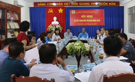 Mới đây, Khối Công đoàn cơ sở trực thuộc LĐLĐ tỉnh tổ chức hội nghị ký kết giao ước thi đua năm 2018 gồm 13 đơn vị do CĐCS Công ty Yến Sào Khánh Hòa làm trưởng khối. Đồng chí Bùi Thanh Bình - Phó Chủ tịch LĐLĐ tỉnh và chỉ đạo Hội nghị.