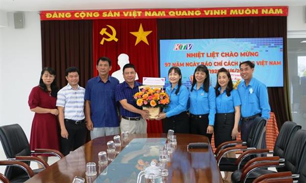 Đồng chí Nguyễn Thị Hằng - Phó Chủ tịch Thường trực LĐLĐ tỉnh đến thăm và chúc mừng Đài Phát thanh và Truyền hình Khánh Hòa