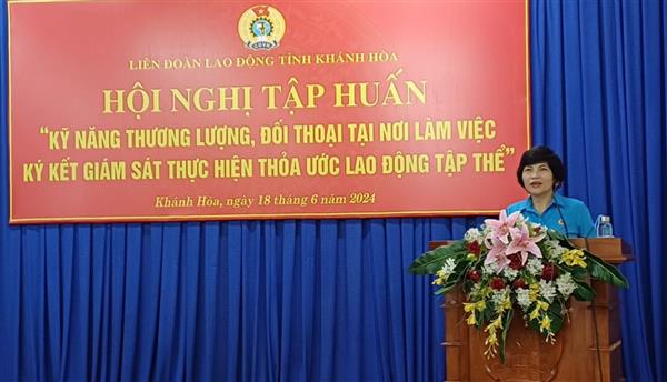 Sáng ngày 18-6, LĐLĐ tỉnh Khánh Hòa tổ chức Hội nghị tập huấn “Kỹ năng thương lượng, đối thoại tại nơi làm việc và ký kết giám sát thực hiện thỏa ước lao động tập thể” cho gần 90 cán bộ là lãnh đạo, cán bộ phụ trách tại LĐLĐ cấp huyện, Công đoàn cấp ngành; CĐCS một số doanh nghiệp có đông lao động trên địa bàn tỉnh. Chủ trì Hội nghị: đồng chí Trần Thị Hương, Phó Chủ tịch LĐLĐ tỉnh.
