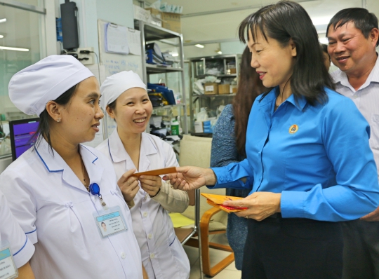 Phó Chủ tịch LĐLĐ tỉnh, Nguyễn Thị Hằng đã đồng cảm và chia sẻ những khó khăn của Khoa và Bệnh viện tỉnh, đồng thời ghi nhận những đóng góp của Bệnh viện trong việc nâng cao chất lượng phục vụ và khám chữa bệnh trong năm qua; trước thềm năm mới, đồng chí chúc toàn thể cán bộ, y, bác sỹ và nhân viên Bệnh viện dồi dào sức khỏe, tiếp tục cống hiến tài, sức cứu chữa và chăm sóc sức khỏe cho người dân.