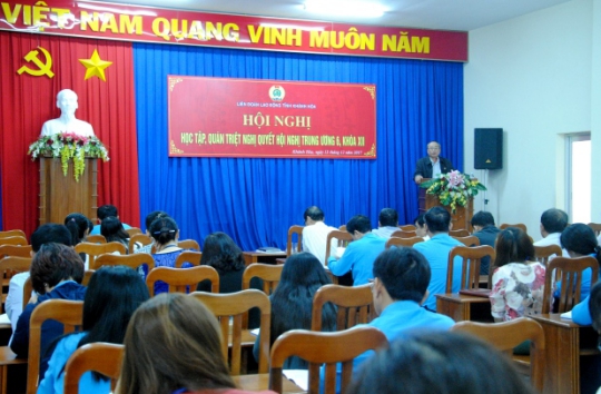 Ngày 13/12, Liên đoàn Lao động tỉnh tổ chức hội nghị học tập, quán triệt các Nghị quyết Hội nghị lần thứ 6 Ban Chấp hành Trung ương Đảng khóa XII. Về dự và chỉ đạo Hội nghị có đồng chí Nguyễn Hòa – Chủ tịch LĐLĐ tỉnh cùng 70 đại biểu là báo cáo viên, lãnh đạo các cấp CĐ.