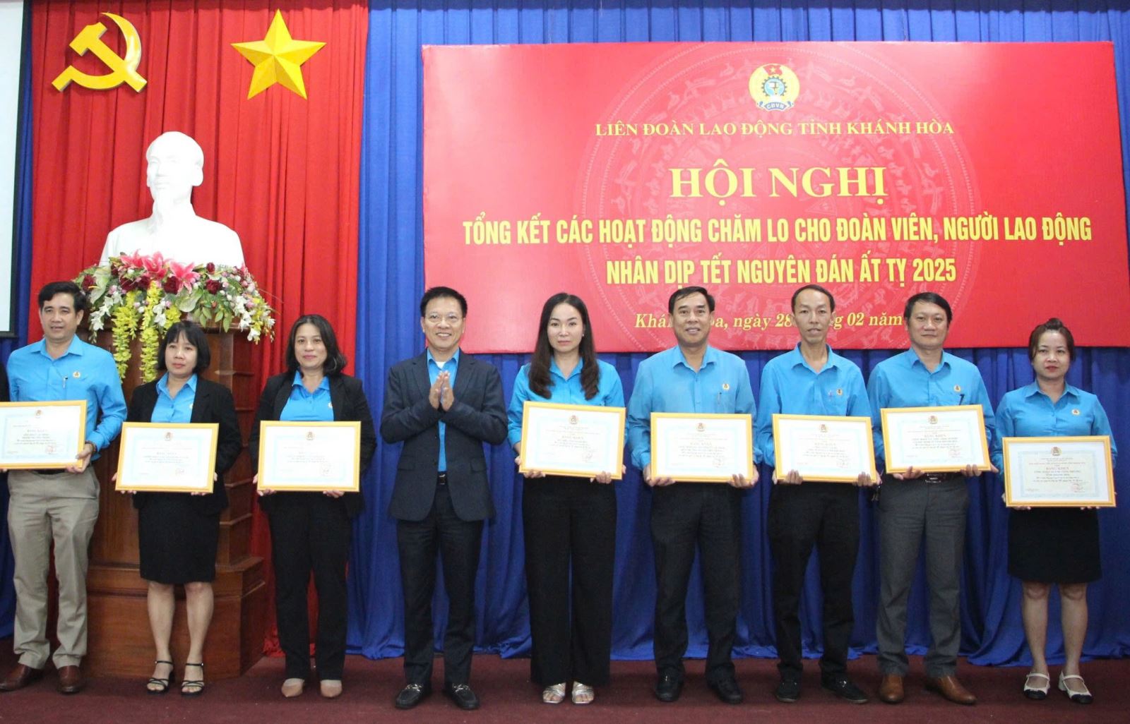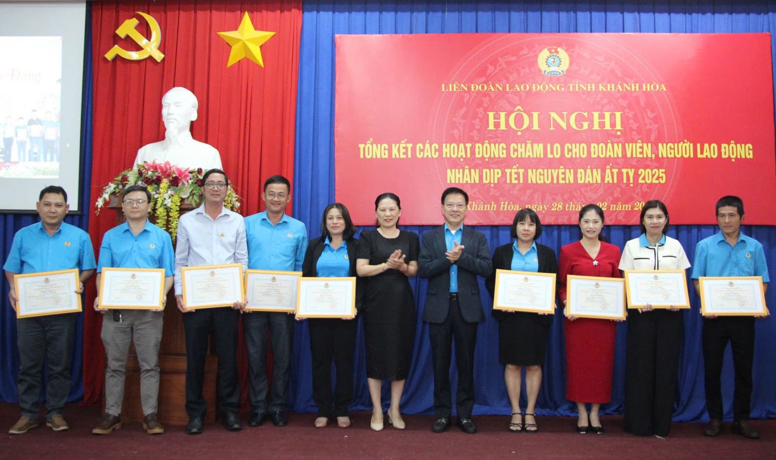 Chiều 28-2, Liên đoàn Lao động tỉnh tổ chức hội nghị tổng kết các hoạt động chăm lo cho đoàn viên, người lao động nhân dịp Tết Nguyên đán Ất Tỵ 2025. Tham dự hội nghị có các đồng chí: Lê Vinh Liên Trang, Phó Trưởng Ban Tuyên giáo & Dân vận Tỉnh ủy; Trần Thị Tú Viên, Phó Chủ tịch UBMTTQ Việt Nam tỉnh; Phan Thanh Liêm, Ủy viên BCH Tổng LĐLĐ VN, chủ tịch LĐLĐ tỉnh; các đồng chí Thường trực LĐLĐ tỉnh, đại diện lãnh đạo Ban Quản lý KKT Vân Phong; lãnh đạo các ban LĐLĐ tỉnh, lãnh đạo LĐLĐ cấp huyện, CĐ cấp ngành, các CĐCS trực thuộc LĐLĐ tỉnh.