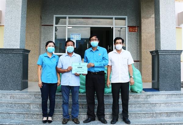 Đ/c Bùi Thanh Bình - Chủ tịch LĐLĐ tỉnh trao hỗ trợ 1,3 tấn gạo