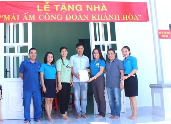 Tết năm nay, gia đình chị Hồ Thị Lan Anh, đoàn viên Công đoàn cơ sở Trung tâm Khuyến nông (xã Suối Cát, huyện Cam Lâm) rất vui, bởi ước mong có một ngôi nhà mới, khang trang an cư lạc nghiệp đã thành hiện thực. Nguồn thu nhập chính từ khoản lương nhân viên trại thực nghiệm gần 4 triệu đồng/tháng và công việc làm thuê thất thường của người chồng chỉ đủ lo cho sinh hoạt và nuôi con nhỏ. Sau gần 10 năm lập gia đình, cả 2 vợ chồng phải thuê trọ và tích cóp mua được mảnh đất ở, nhưng vì hoàn cảnh khó khăn nên gia đình chưa thể xây được nhà. Trước hoàn cảnh đó, Công đoàn tỉnh đã khảo sát hỗ trợ 50 triệu đồng, bố mẹ, anh em hỗ trợ ngày công, vật liệu để xây căn nhà mới. Chị Anh nói: “Nếu không được công đoàn hỗ trợ kinh phí thì chưa biết đến bao giờ vợ chồng tôi mới xây dựng được căn nhà mới. Vậy là Tết này gia đình được đón xuân trong căn nhà mơ ước, niềm vui được nhân đôi”…