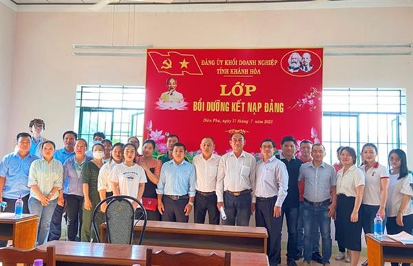 Ngày 31/7/2022, tại Nhà điều hành Cụm công nghiệp Diên Phú, Đảng ủy Khối Doanh nghiệp tỉnh phối hợp với Đảng ủy Nòng cốt Cụm công nghiệp Diên Phú và Đắc Lộc, Đảng ủy xây dựng lực lượng chính trị Khu công nghiệp Suối Dầu, huyện Cam Lâm tổ chức lớp bồi dưỡng kết nạp Đảng đợt 2/2022.