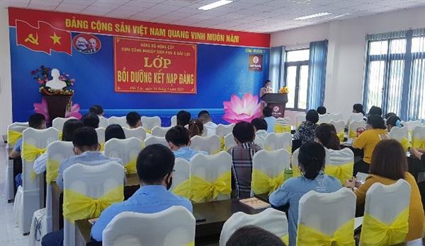 Ngày 16/5, Đảng ủy Khối Doanh nghiệp tỉnh Khánh Hòa phối hợp với Đảng ủy Nòng cốt Cụm công nghiệp Diên Phú & Đắc Lộc tổ chức lớp bồi dưỡng kết nạp Đảng đợt 1/2021. Tham gia lớp này có 50 quần chúng ưu tú đến từ các doanh nghiệp tư nhân và của các tổ chức cơ sở đảng gồm: Đảng bộ Xây dựng lực lượng chính trị Khu công nghiệp Suối Dầu, Đảng bộ Cụm công nghiệp Diên Phú & Đắc Lộc, Đảng bộ Công ty Cổ phần Cà phê Mê Trang, Chi bộ Công ty Cổ phần Thủy sản Thông Thuận Cam Ranh.
