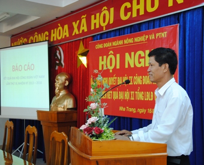 Ngày 16.8, Công đoàn ngành Nông nghiệp - PTNT tỉnh đã tổ chức Hội nghị báo cáo nhanh kết quả Đại hội XI Công đoàn Việt Nam (2013 – 2018) và triển khai Nghị quyết Đại hội IX Công đoàn Khánh Hòa. Tham dự hội nghị có hơn 60 cán bộ CĐ chủ chốt của 47 CĐCS trực thuộc.