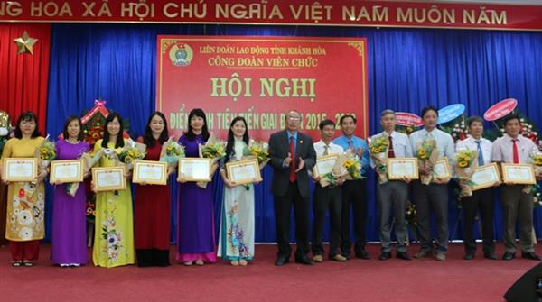 Từ năm 2015 đến nay, cấp CĐCS đã có 03 đơn vị được nhận cờ thi đua Tổng LĐLĐ; 03 đơn vị nhận Cờ thi đua LĐLĐ tỉnh; 03 đơn vị được nhận Bằng khen TLĐ; có 10 đề tài, công trình khoa học được Tổng Liên đoàn cấp Bằng Lao động sáng tạo; 38 tập thể và 76 cá nhân được nhận Bằng khen LĐLĐ tỉnh; 553 tập thể được nhận Cờ thi đua, Giấy khen CĐVC tỉnh; số CĐCS vững mạnh (hoàn thành tốt nhiệm vụ) đạt tỷ lệ từ 98% trở lên, số đoàn viên hoàn thành tốt nhiệm vụ đạt trên 95%. CĐVC tỉnh đã vinh dự nhận 02 Cờ thi đua LĐLĐ tỉnh; 01 bằng khen Tổng LĐLĐ VN và nhiều Bằng khen của Ủy Ban nhân dân tỉnh Khánh Hòa, LĐLĐ tỉnh, CĐVC Việt Nam.