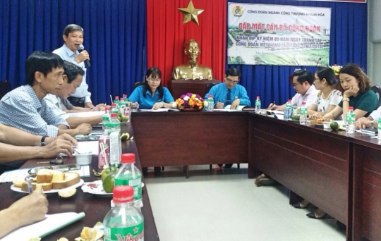 Chiều ngày 27-7, Công đoàn ngành Công Thương tỉnh tổ chức gặp mặt cán bộ Công đoàn nhân kỷ niệm 89 năm ngày thành lập Công đoàn Việt Nam (28/7/1929 - 28/7/2018) và Sơ kết hoạt động Công đoàn 6 tháng đầu năm 2018. Đồng chí Nguyễn Thị Hằng - Phó Chủ tịch Thường trực LĐLĐ tỉnh Khánh Hòa, đồng chí Lê Hoàng Thọ - Phó Giám đốc Sở Công Thương Khánh Hòa đến dự và phát biểu chỉ đạo. Đồng chí Nguyễn Thị Hằng - Phó Chủ tịch Thường trực LĐLĐ tỉnh Khánh Hòa đánh giá cao những thành tích của đơn vị, đồng thời lưu ý những nhiệm vụ trọng tâm 6 tháng cuối năm 2018: Tuyên truyền giáo dục; vận động CĐCS tham gia tổ chức Công đoàn, kết nạp đoàn viên mới; quan tâm đến công tác thu, chi, quản lý, sử dụng tài chính công đoàn; tập huấn cán bộ Công đoàn, phấn đấu hoàn thành các chỉ tiêu được giao.Giải đáp trả lời các câu hỏi liên quan đến tổ chức Công đoàn do Ban tổ chức đưa ra; chia sẻ những kinh nghiệm quý báu trong quá trình hoạt động Công đoàn tại doanh nghiệp.