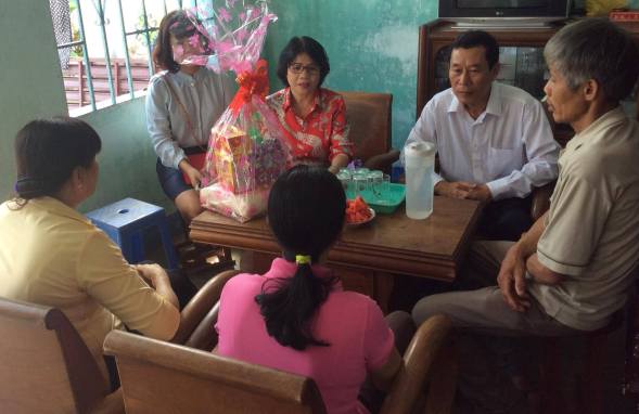 Nhân dịp này, CĐ các Khu CN và KKT tỉnh thăm hỏi và trao tặng 30 suất quà cho gia đình và CNLĐ thuộc khu công nghiệp Bình Tân và thăm gia đình Chị Nguyễn Thị Sáu làm việc tại DN thuộc khu vực Bình Tân – Nha Trang , hiện có mẹ già và hai con thường xuyên đau ốm, mỗi suất quà trị giá 300.000đ trích từ kinh phí Chương trình 1.500 suất quà của LĐLĐ hỗ trợ người lao động nhân dịp tết năm 2016.