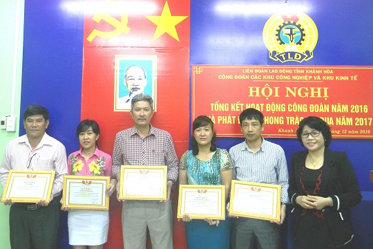 Ghi nhận thành tích năm 2016, LĐLĐ tỉnh tặng bằng khen cho 3 tập thể 13 cá nhân, CĐ các KCN-KKT tỉnh Khánh Hòa tặng giấy khen cho 13 tập thể 194 cá nhân.