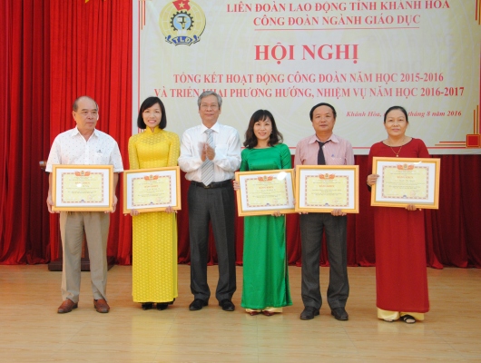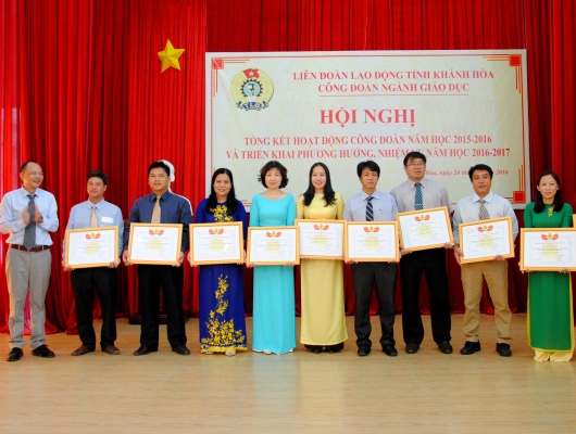 Ghi nhận những thành tích nổi bật, Công đoàn Giáo dục Việt Nam tặng Bằng khen cho 01 tập thể và 4 cá nhân xuất sắc trong phong trào thi đua “Dạy tốt – Học tốt”; Liên đoàn Lao động tỉnh và CĐ ngành Giáo dục tỉnh Khánh Hoà tặng Cờ thi đua xuất sắc cho 4 tập thể, khen thưởng 49 tập thể và 126 cá nhân xuất sắc trong hoạt động công đoàn năm học 2015-2016.