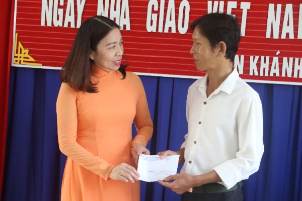 Đ/c Trương Minh Hà - Chủ tịch CĐN Giáo dục tỉnh trao hỗ trợ cho cán bộ, giáo viên khó khăn