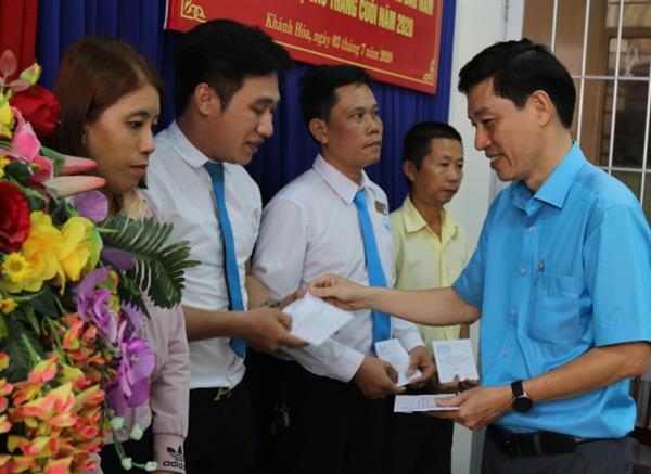 Đ/c Chu Văn An - Chủ tịch CĐN Giao thông tỉnh trao hỗ trợ cho đoàn viên khó khăn