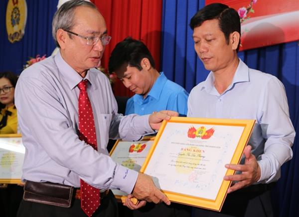 Đ/c Nguyễn Hòa - Chủ tịch LĐLĐ tỉnh tặng bằng khen cho các cá nhân xuất sắc năm 2018