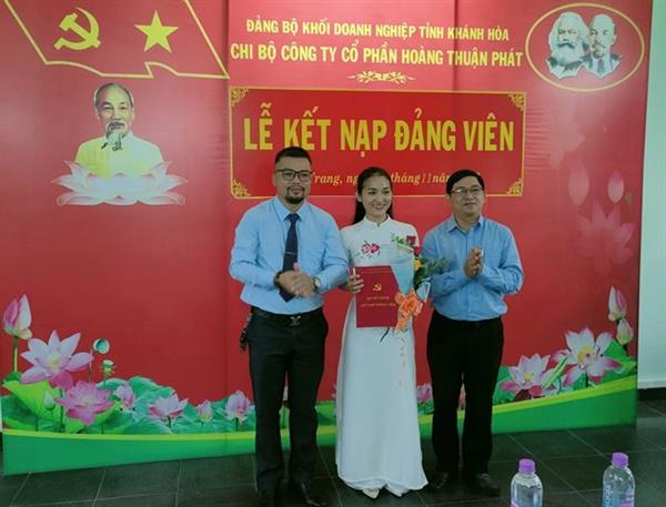 Tại buổi Lễ, Chi bộ cơ sở Công ty Cổ phần Hoàng Thuận Phát đã đọc quyết định của Ban Thường vụ Đảng ủy Khối Doanh nghiệp tỉnh Khánh Hòa kết nạp quần chúng Nguyễn Thị Kim Hạnh vào đảng; nâng tổng số đảng viên kết nạp trong năm 2022 là 3 đồng chí. Đồng chí Nguyễn Văn Tuấn, Bí thư Chi bộ chúc mừng đảng viên mới, nêu rõ trách nhiệm, quyền hạn và nghĩa vụ của đảng viên dự bị, phân công đảng viên chính thức tiếp tục giúp đỡ đảng viên dự bị trong 12 tháng cho đến khi trở thành đảng viên chính thức.