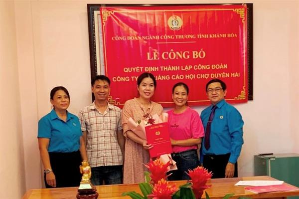 Nhân Kỷ niệm 47 năm Ngày giải phóng hoàn toàn Miền Nam thống nhất đất nước (30/4/1975 - 30/4/2022) và tháng Công nhân năm 2022, Công đoàn ngành Công Thương tỉnh tổ chức Lễ công bố thành lập Công đoàn cơ sở Công ty Cổ phần Quảng Cáo Hội Chợ Duyên Hải (đường 23-10, phường Phương Sơn, TP. Nha Trang).