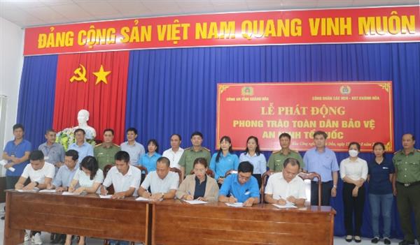 Nhằm đẩy mạnh phong trào toàn dân bảo vệ An ninh Tổ quốc (ANTQ) ngày càng sâu rộng đến từng doanh nghiệp và công nhân trong KCN Suối Dầu. Sáng ngày 15/8/2022, Công đoàn các Khu Công nghiệp và Khu Kinh tế tỉnh Khánh Hòa (Công đoàn các KCN) phối hợp với Công an tỉnh Khánh Hòa tổ chức Lễ phát động Phong trào toàn dân bảo vệ an ninh Tổ quốc. Tham dự có đồng chí Đại tá Đinh Hồng Nghiệp – Phó Giám đốc Công an tỉnh Khánh Hòa, đồng chí Nguyễn Thị Hằng – Phó Chủ tịch Thường trực LĐLĐ tỉnh.