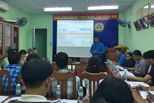 Nhằm nâng cao kỹ năng cho cán bộ công đoàn về an toàn trong lao động sản xuất, sáng ngày 20/9, Công đoàn các KCN-KKT tỉnh Khánh Hòa phối hợp với Ban Chính sách Pháp luật LĐLĐ tỉnh Khánh Hòa tổ chức lớp tập huấn công tác An toàn vệ sinh lao động cho 36 học viên là cán bộ chủ chốt CĐCS, cán bộ làm công tác quản lý, phụ trách mảng ATVSLĐ.